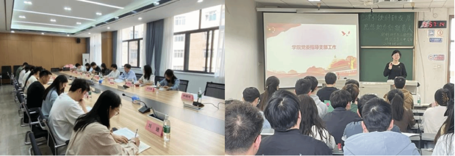 研究生原横向党支部建设所暴露出来的薄弱环节,学院党委深入开展调研,实施改革优化,依托科研团队建设成立研究生纵向党支部,选拔业务能力强、思想政治觉悟高的辅导员担任支部指导老师,选拔品学兼优、锐意进取的研究生党员担任支部书记与支部委员,形成师生共建、思政工作与科学研究同频协进的党建新模式。为持续做好深入基层联系学生党员工作,学院党委与研究生党员面对面谈心谈话,指导支部建设工作,为研究生党员队伍注活力、添动力。同时,学院扎实推进支部书记工作会议常态化开展,坚持不打折扣落实“第一议题”制度,加强党支部书记队伍建设。
