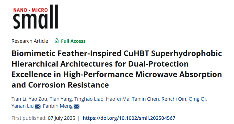 研究成果以“Biomimetic Feather-Inspired CuHBT Superhydrophobic Hierarchical Architectures for Dual-Protection Excellence in High-performance Microwave Absorption and Corrosion Resistance”发表于《Small》期刊。包子漫画
